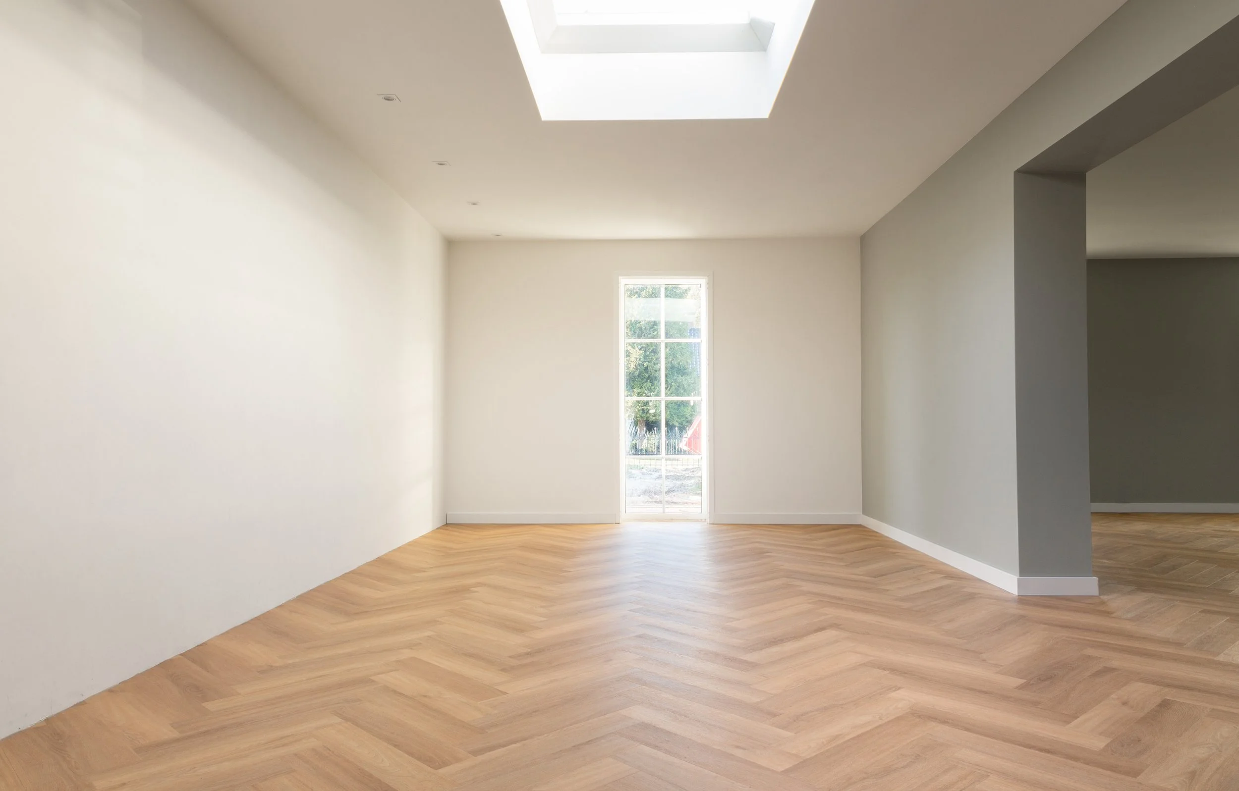 Zeer strakke ruimte geworden op deze manier. Mooie kleurcombinatie. De vloer komt mooi naar voren op deze manier.